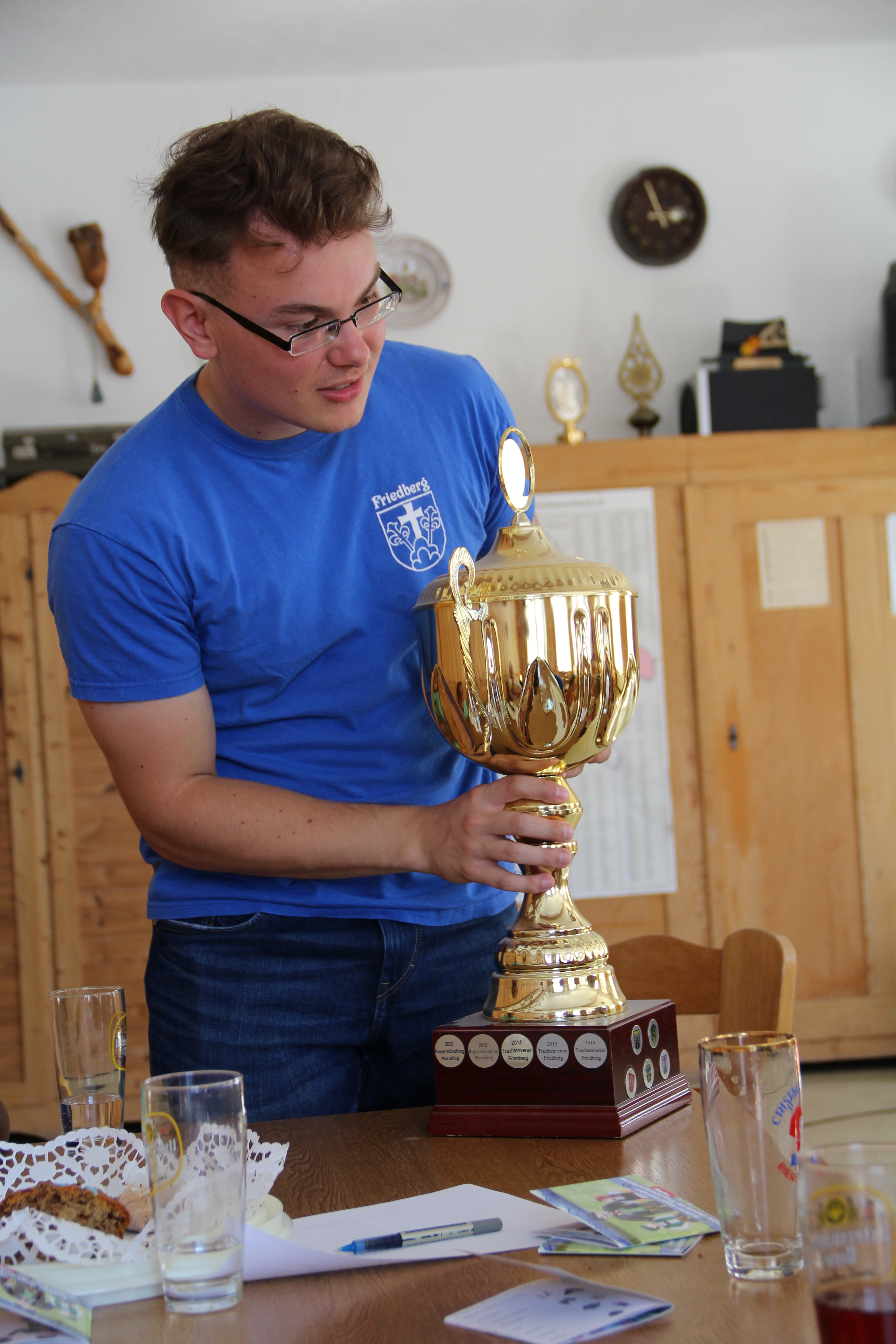 Mit Stolz zeigte auch Jakob den Mädchen den Pokal, den die Jugend beim Bezirksjugendwertungsplatteln gewonnen hat. Bei dreimaligem Gewinn, bleibt dieser Pokal im Besitz des Jeweiligen Vereins