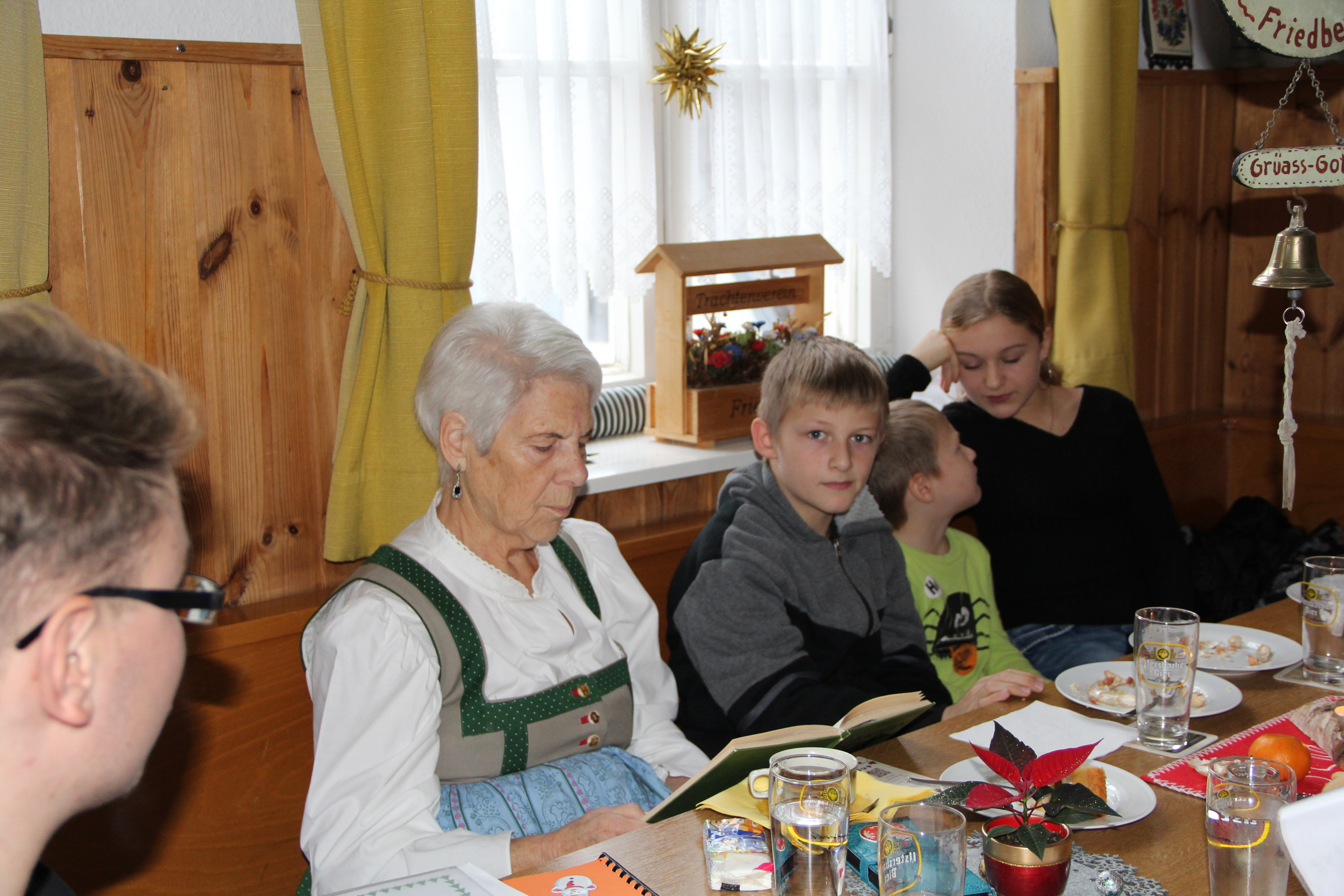Besonders die Kinder des Trachtenvereins waren voller Erwartung, bis der Heilige Nikolaus an die Türe klopfte. Das Kerzengedicht, was die Schriftführerin vortrug, hier leisteten die Trachtenkinder gute Mitarbeit.